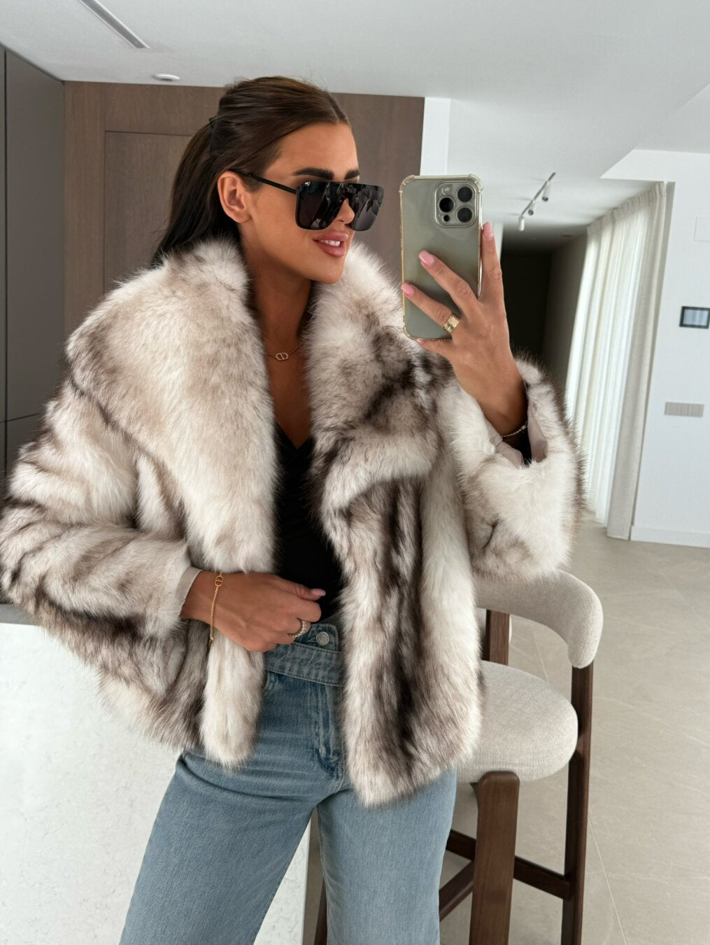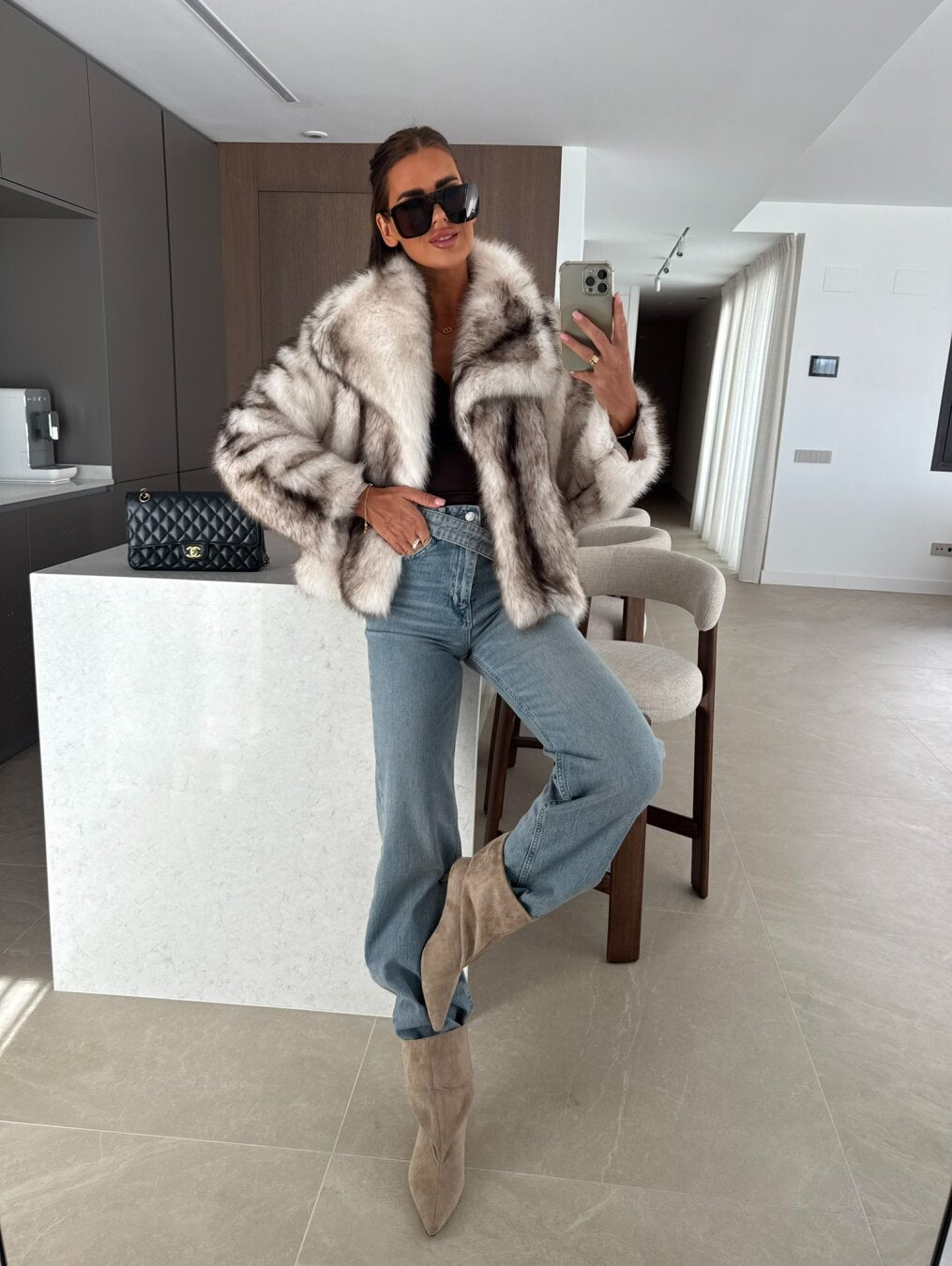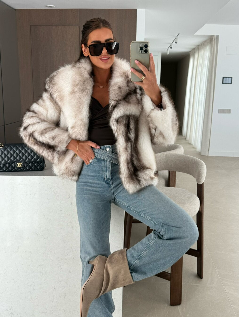 Cazadora de cuello solapa y manga larga. Bolsillos laterales ocultos en costura. Forro interior combinado a contraste.