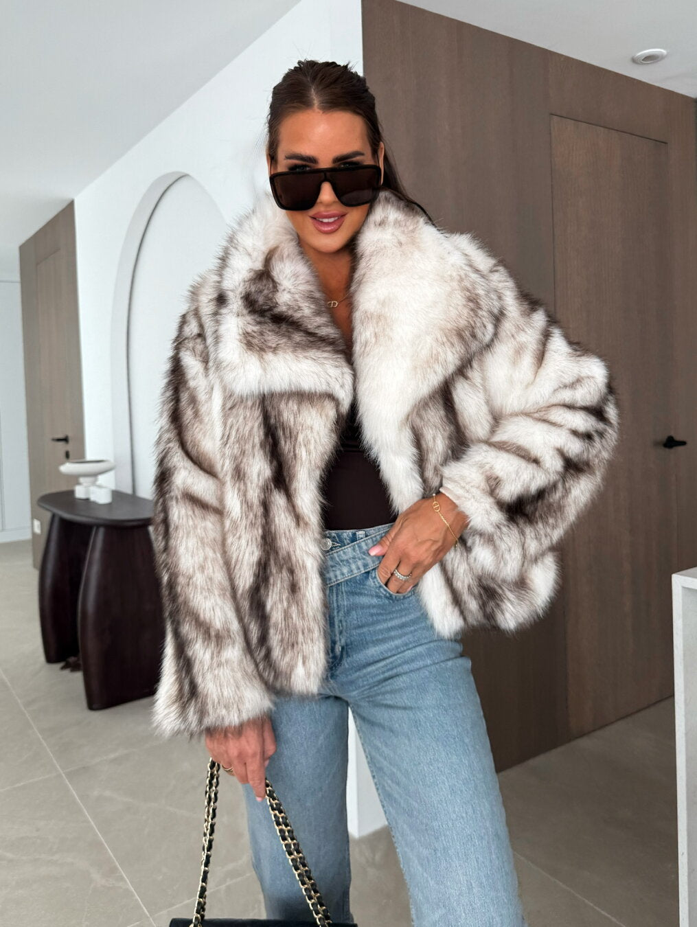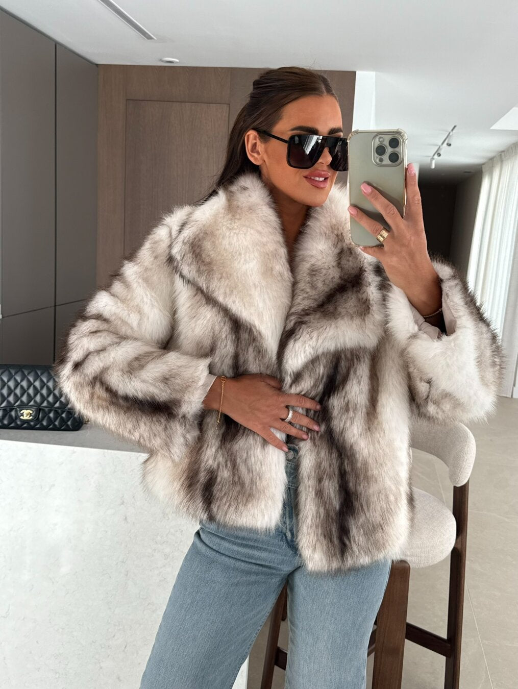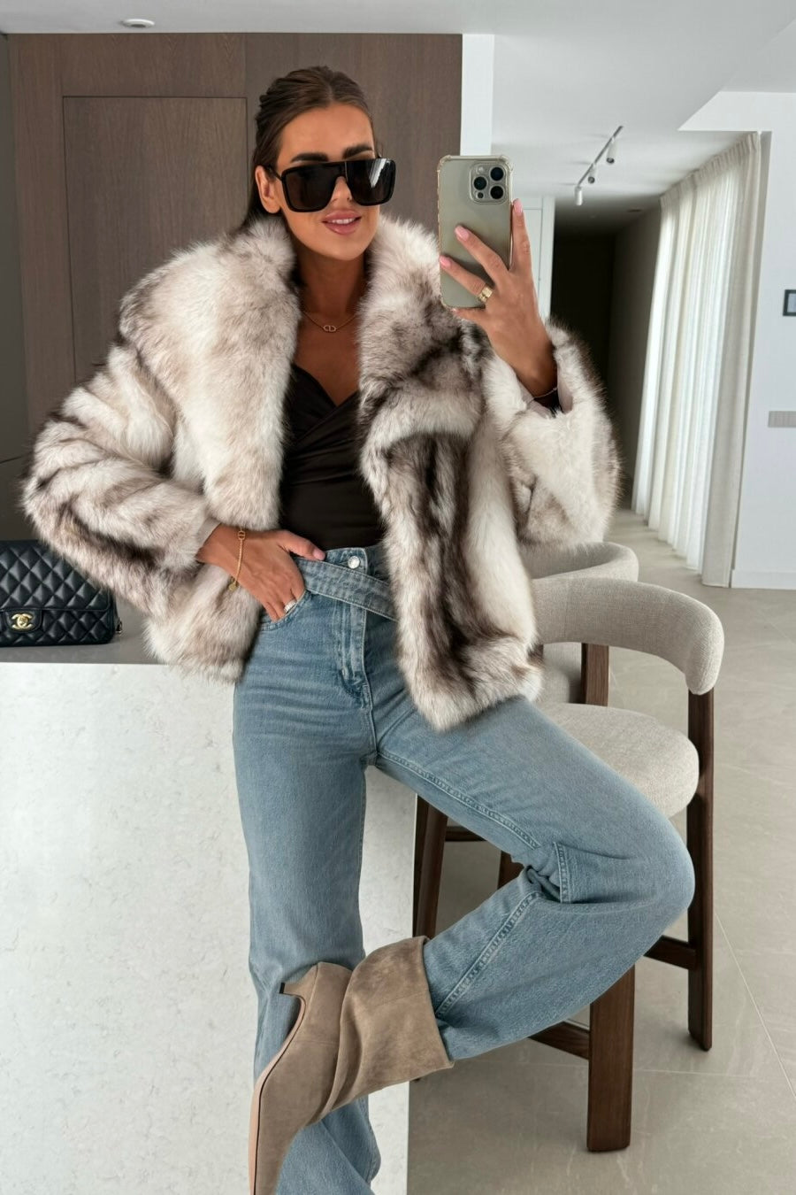 Cazadora de cuello solapa y manga larga. Bolsillos laterales ocultos en costura. Forro interior combinado a contraste.