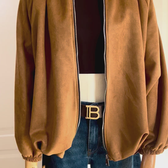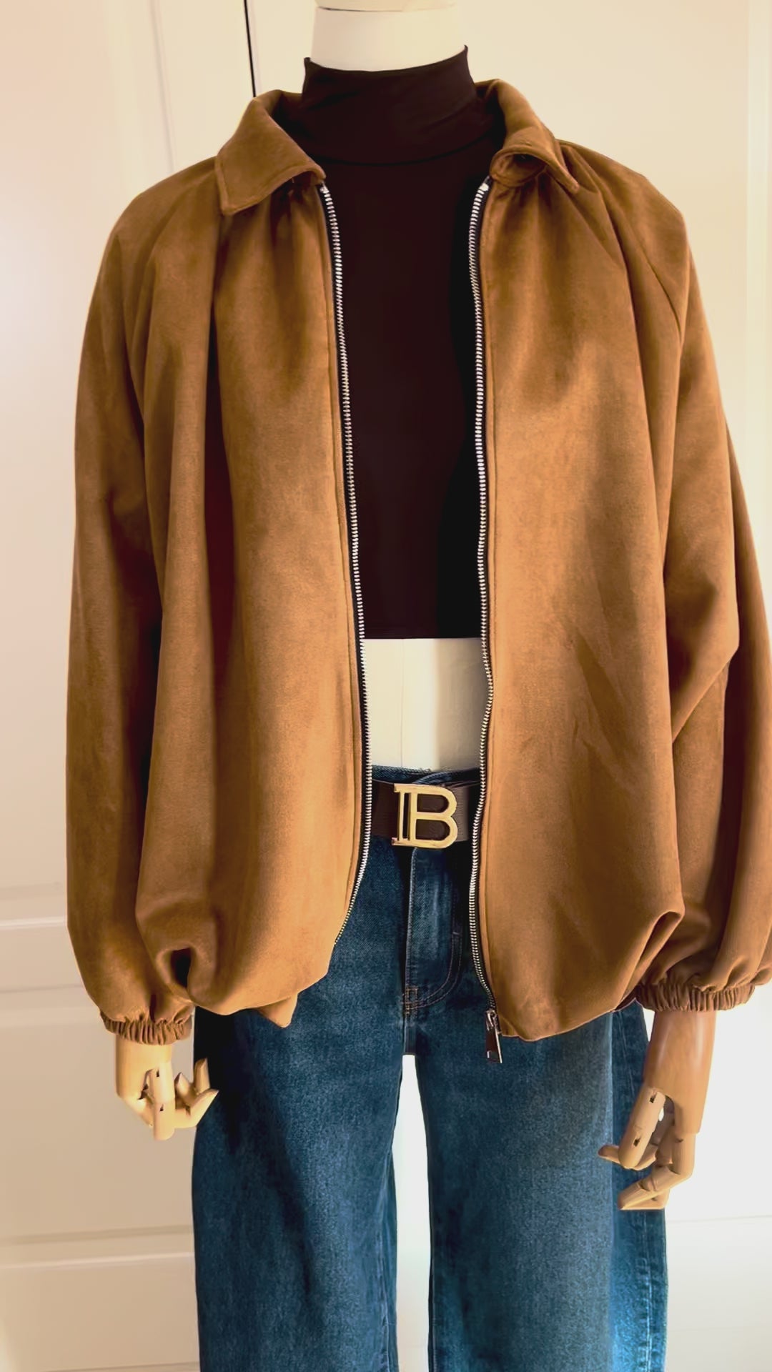 CHAQUETA BOMBER EFECTO ANTE CAMEL