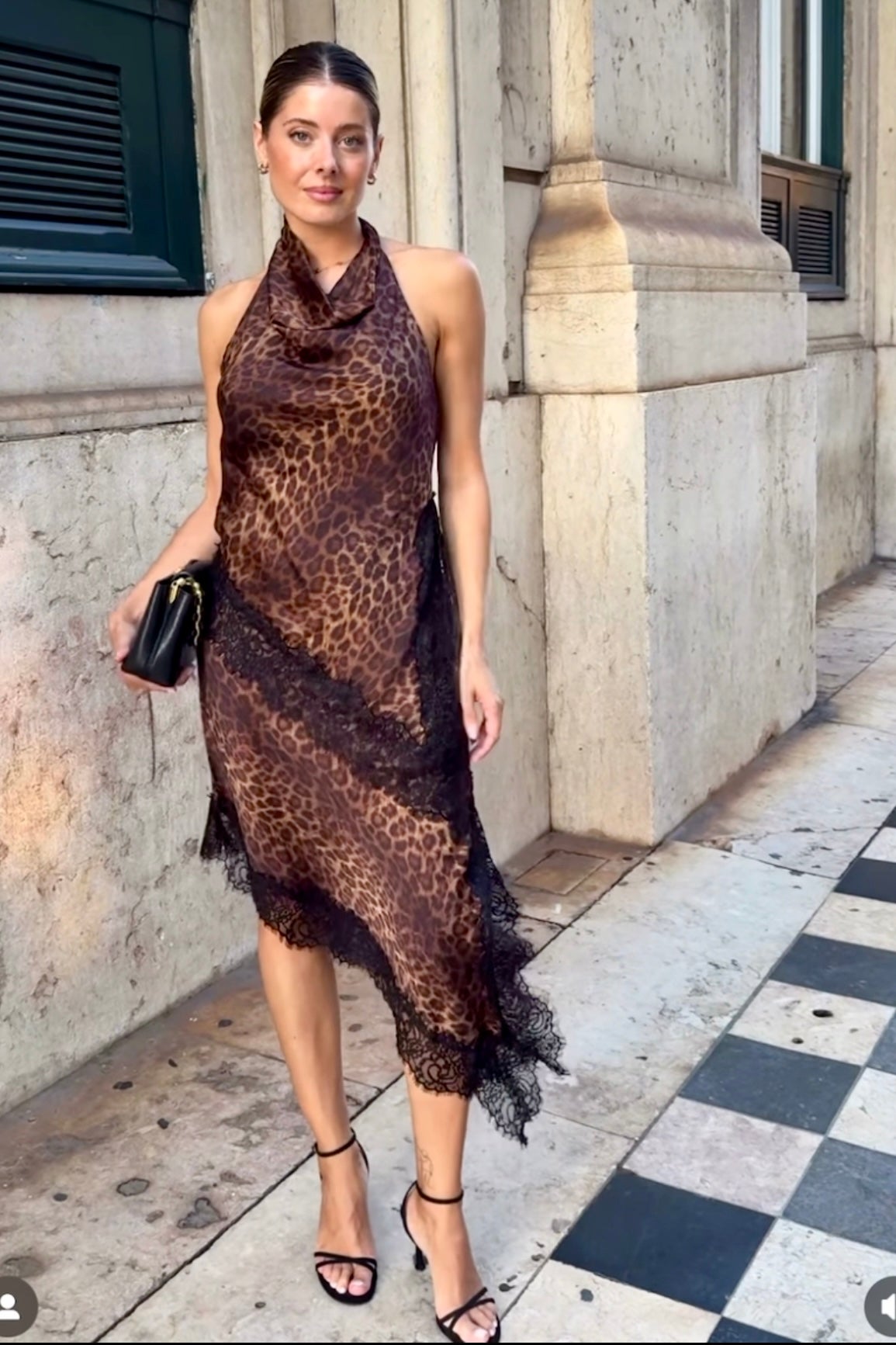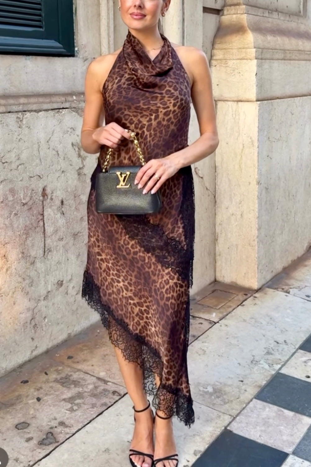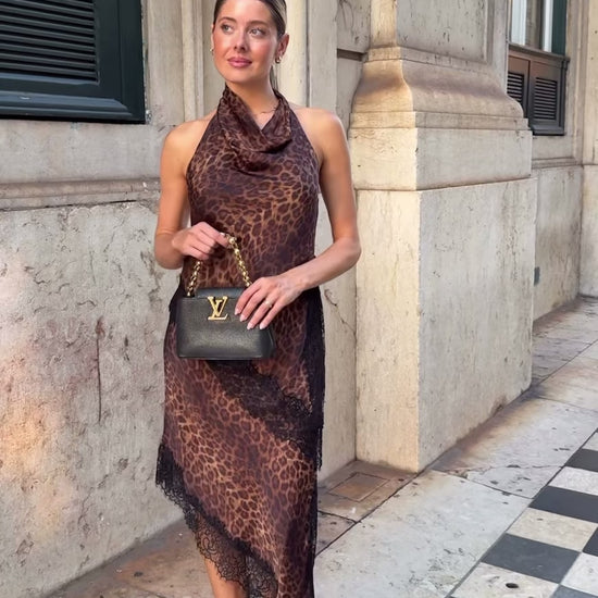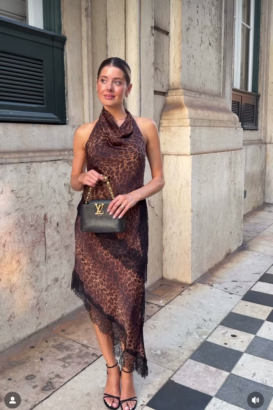 CONJUNTO LENCERO ESTAMPADO ANIMAL HALTER ENCAJE
