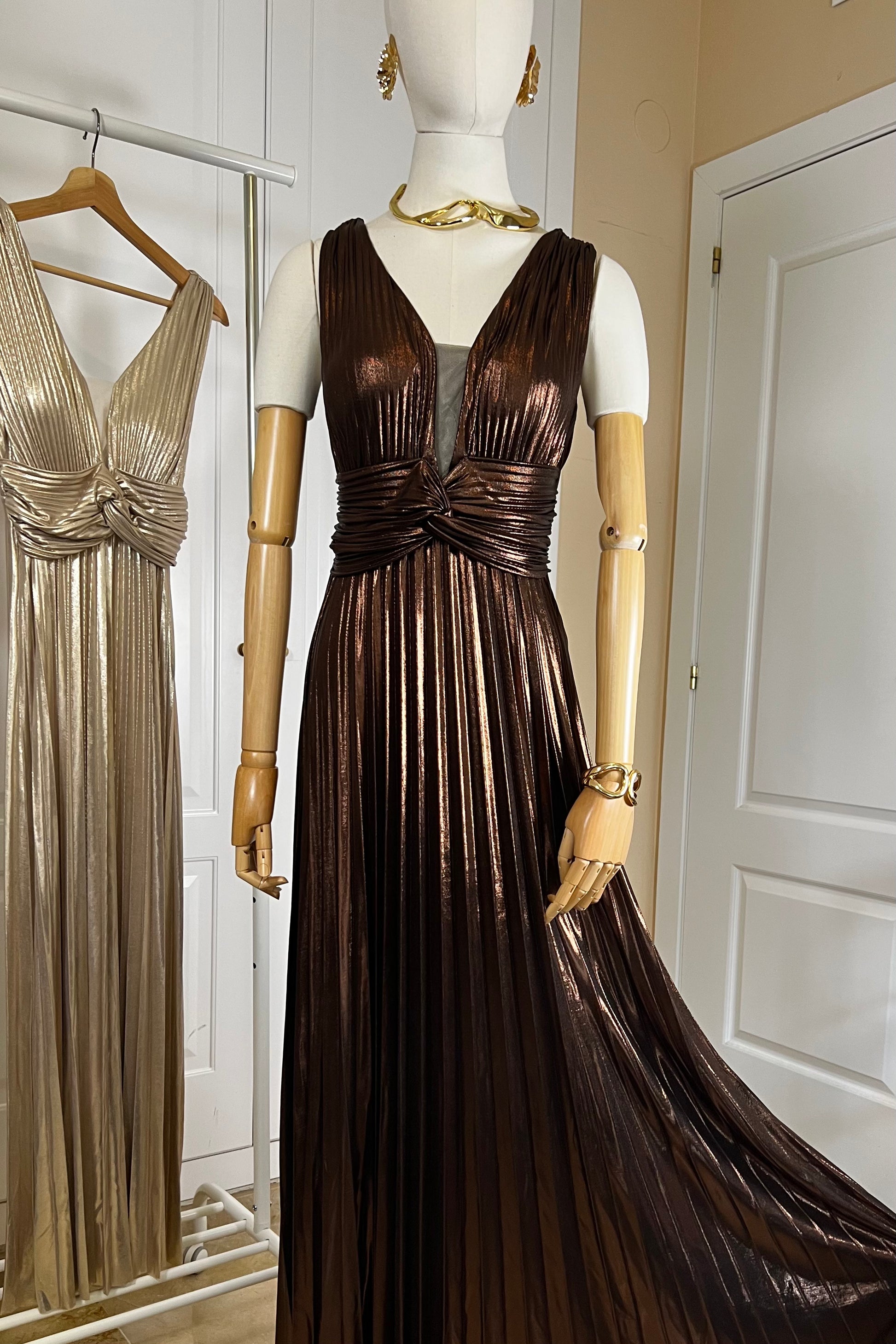 MAXI VESTIDO PLISADO MARRON