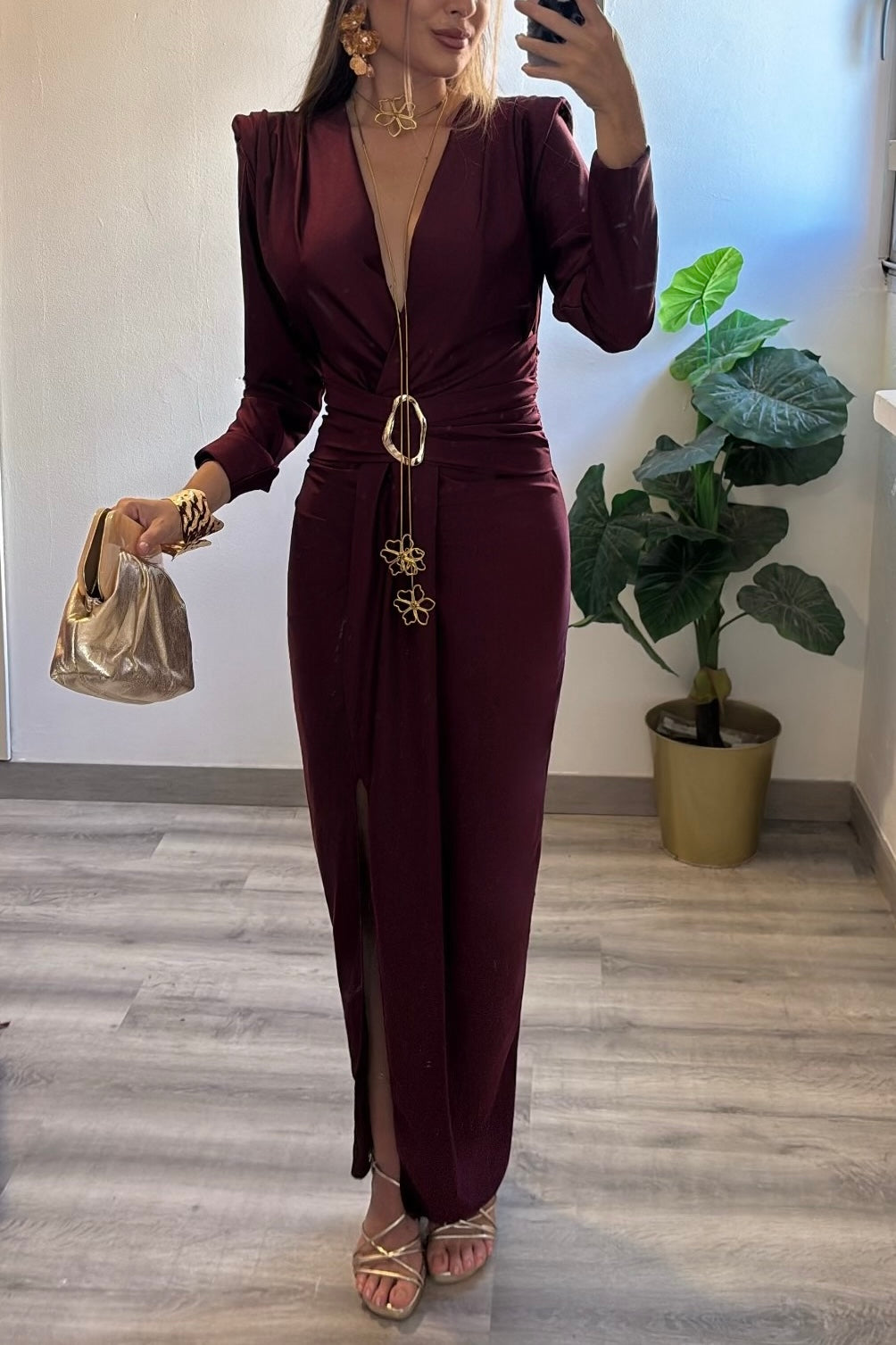VESTIDO LORENA MANGA Y DIJE BURDEO