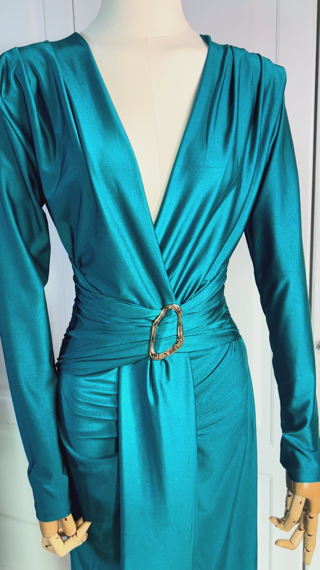 VESTIDO LORENA MANGA Y DIJE TURQUEZA