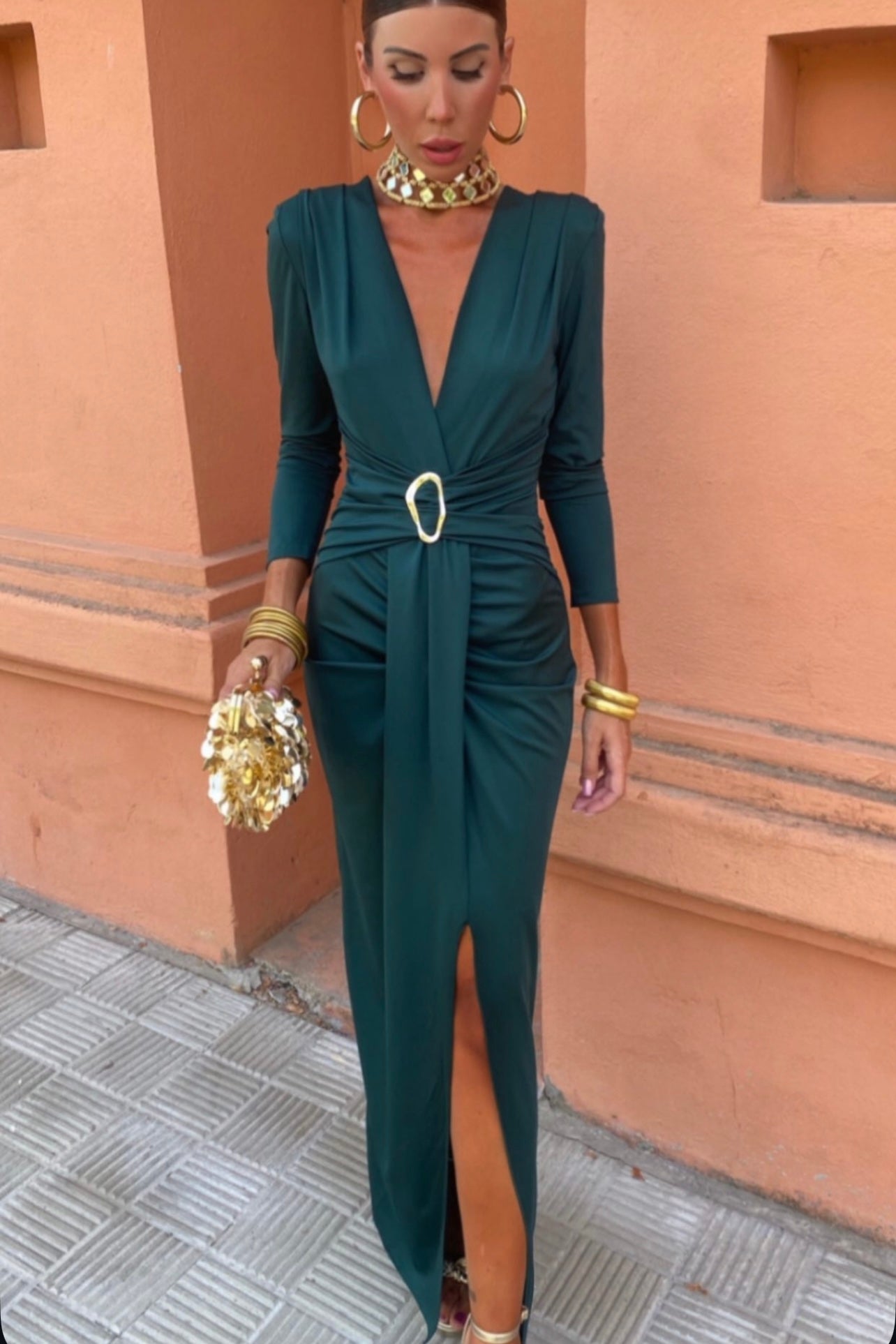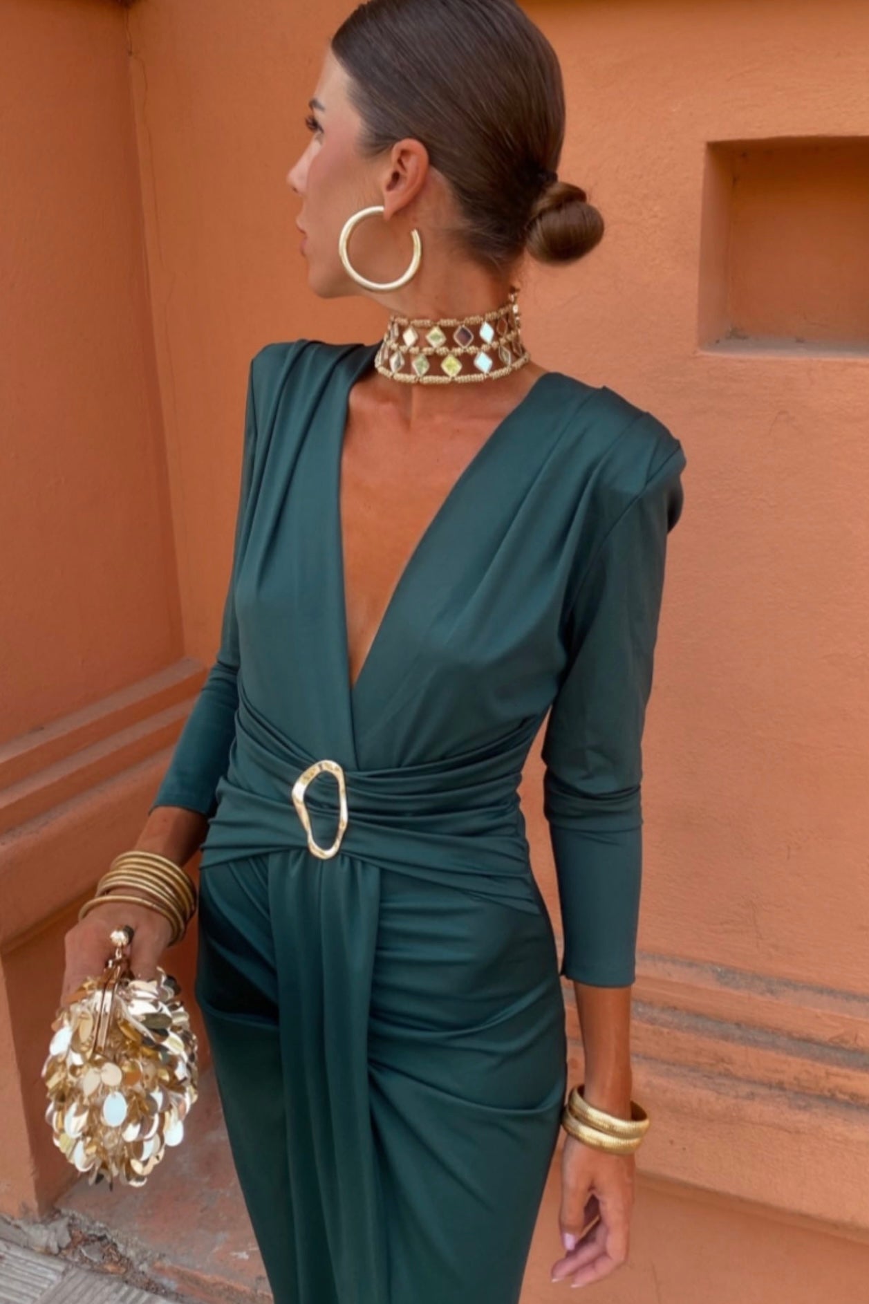 VESTIDO LORENA MANGA Y DIJE ESMERALDA